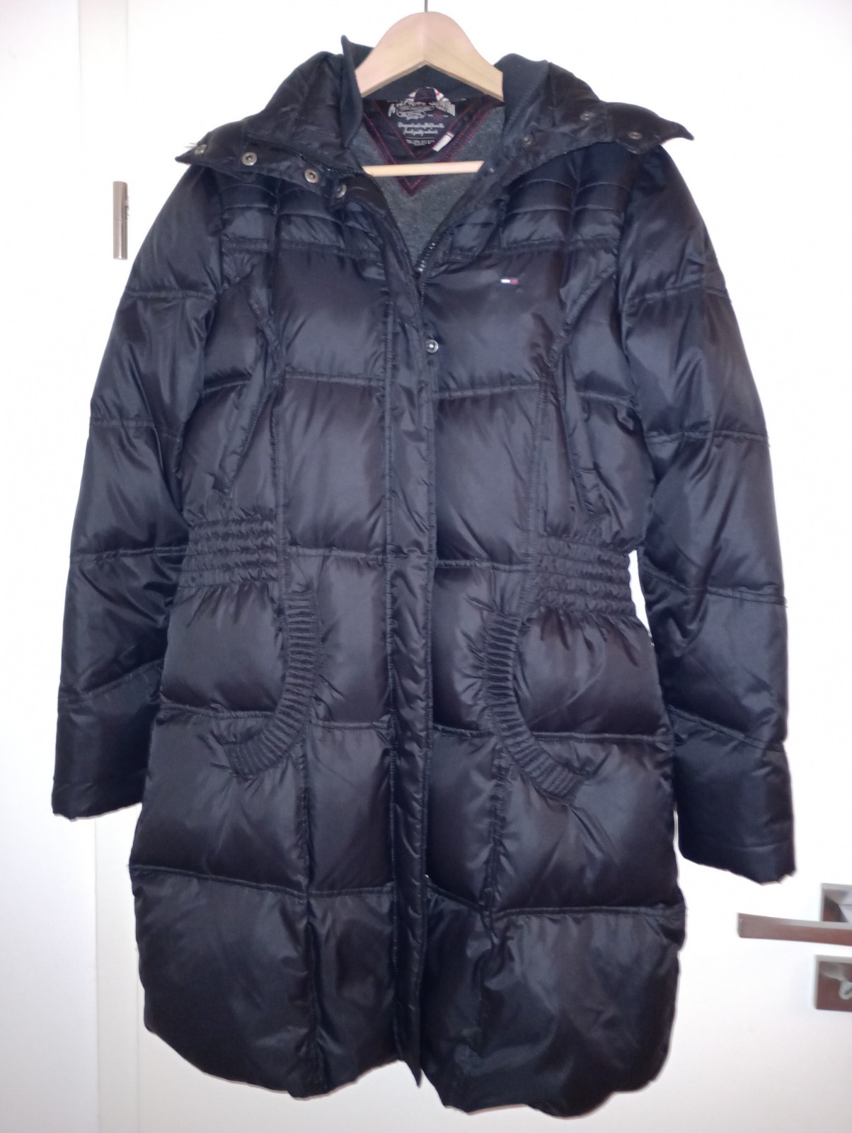 Erleben Sie Wärme und Stil mit dem Tommy Hilfiger Winterparka in Größe XL mit Kapuze . Gebraucht in sehr gutem Zustand. Fällt etwas schlanker aus. eher wie L mit langen Ärmeln. Aus Polyester mit 85% Daunenfüllung Doppelter Reißverschluss für ein einfaches An- und Ausziehen. Taillierte Passform ( auch noch aussen schnürbar - siehe Bilder Treuer Kompanion für die kühleren Tage. Abmessungen ca Gesamtlänge 100 cm einfache Brustweite 50 cm Schulterbreite 44 cm Armlänge außen 66 cm Armlänge innen 49 cm Obwohl dort X-large steht, fällt der Parka relativ schmal aus, das bedeutet, er ist für eher schlanke Frauen sehr gut geeignet Privatverkauf unter dem Ausschluss jeglicher Gewährleistung