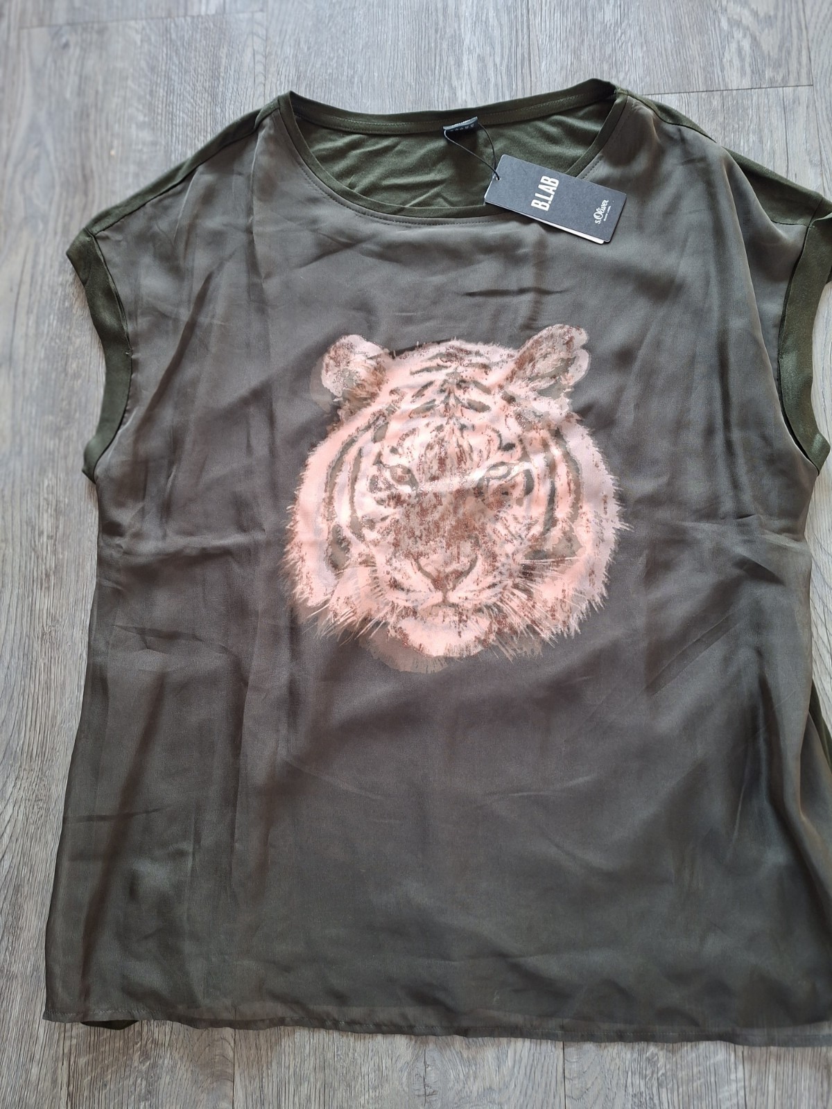 süsses Shirt der Marke S. Oliver - BLACK LABEL In der Größe 46 - neu und ungetragen mit Originaletikett Farbe dunkelgrün- mit aufdruck auf der Vorderseite ein Löwenkopf - mit Glitzer Viel Spaß beim Bieten