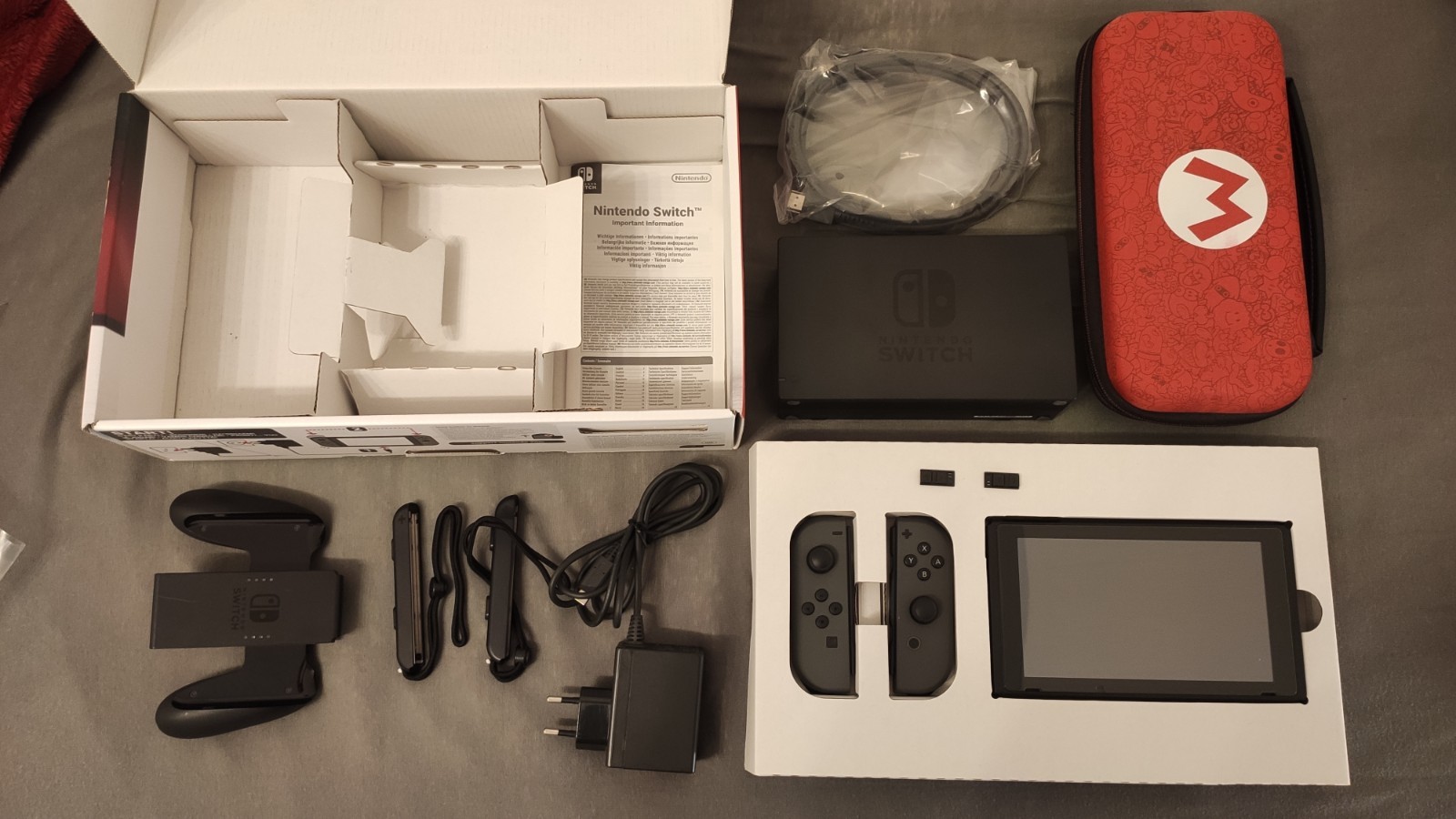 Nintendo Switch Grau, komplett mit OVP, Mario Tasche, 32GB, Gute Seriennummer