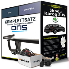 KOMPLETTSATZ für Skoda Yeti 01.2014 - 12.2017, bestehend aus Anhängerkupplung starr von Oris und Elektrosatz 13-polig universell von TowTec. Wichtige Informationen und Einbauanleitungen - bitte Link klicken!.