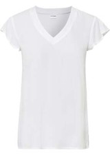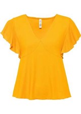 Kurzes Blusentop mit Volant Gr. 44 Hibiskuspink Schwarz Weiß Damen-Top Bluse Neu