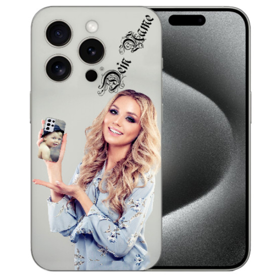Personalisierte Handy Hülle TPU für iPhone 15 Pro mit eigenem Fotodruck Panda