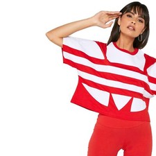 This Adidas Women’s Red Trefoil T-Shirt in size S is a stylish and comfortable addition to any woman's wardrobe. Made from lightweight and breathable cotton jersey fabric, this short sleeve t-shirt features the iconic Trefoil Logo on the front and 3-Stripes on the sleeves, adding a touch of sporty flair. The pullover crew neck design is perfect for casual occasions during the autumn, summer, and spring seasons. Easy to care for with machine washable properties, this t-shirt is a versatile basic style that can be worn for any occasion.
