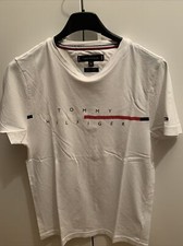 Sehr angenehm zu tragendes Baumwoll-T-Shirt. Biete tolles T-Shirt für Mädchen von Tommy Hilfiger, Größe 128. - Farbe: weiß mit klassischem Tommy-Muster auf der Brust. - wir haben einen tierlosen Nichtraucher-Haushalt.