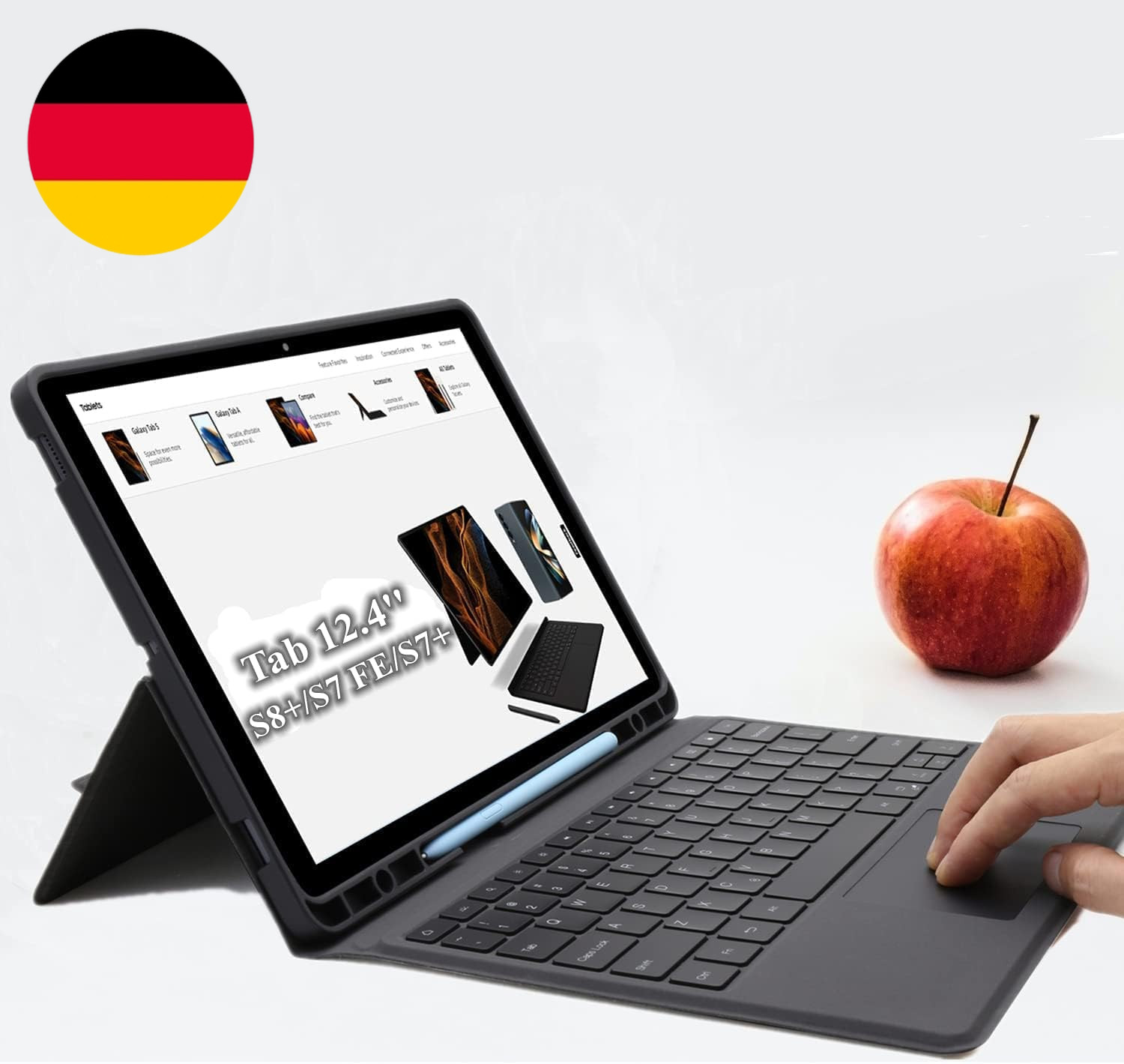 ROOFEI Hülle Mit Tastatur Für 12,4 Zoll Samsung Galaxy Tab S7 FE/S8+/S7+ : All-I