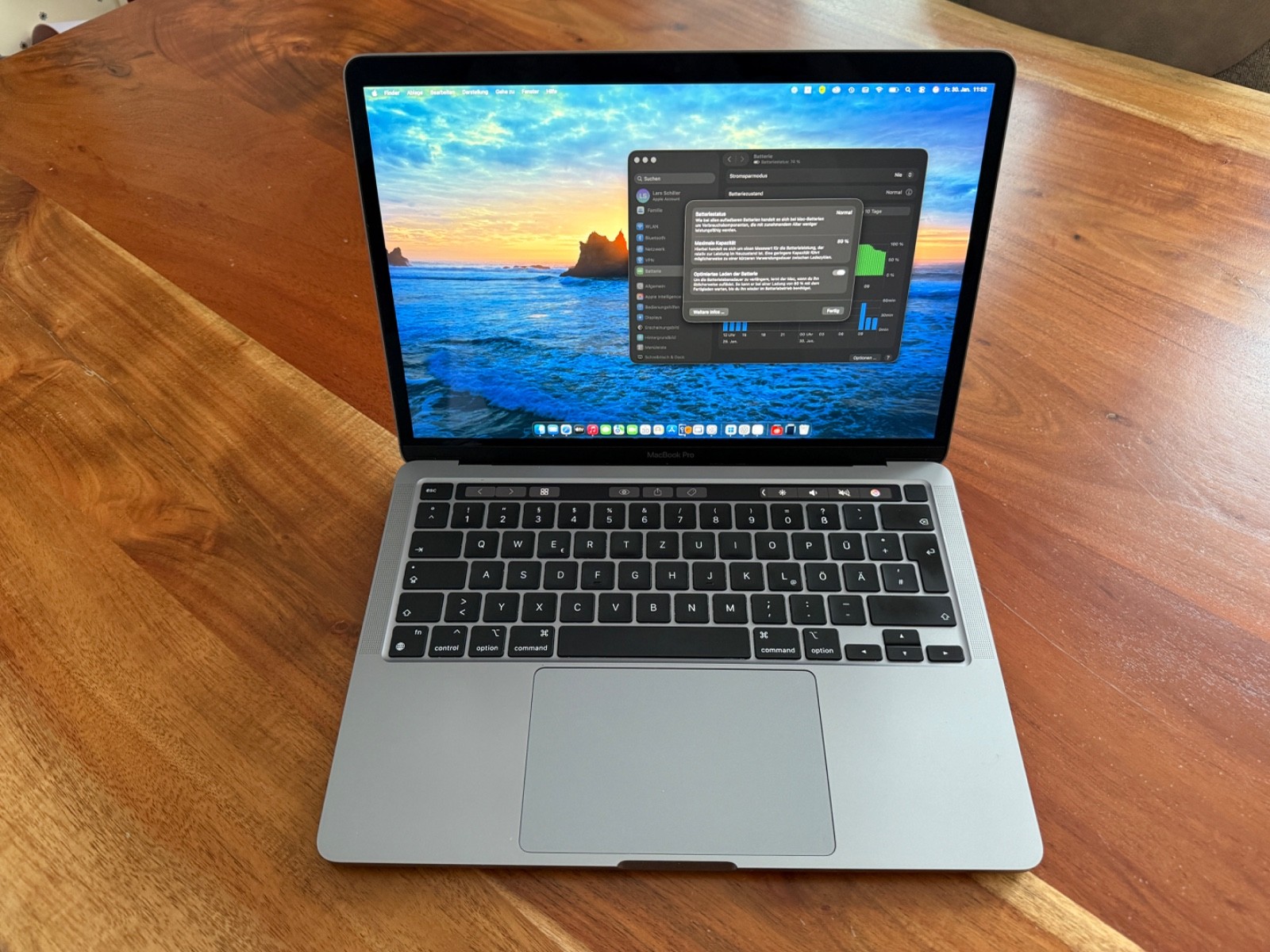 Technik: Einwandfrei. Alles (Touch Bar, Touch ID, Display etc.) funktioniert ohne Einschränkungen. Speicher: 8 GB RAM / 256 GB SSD. Optik: Sehr guter gebrauchter Zustand. Auf derUnterseite sind leichte Kratzer vorhanden.