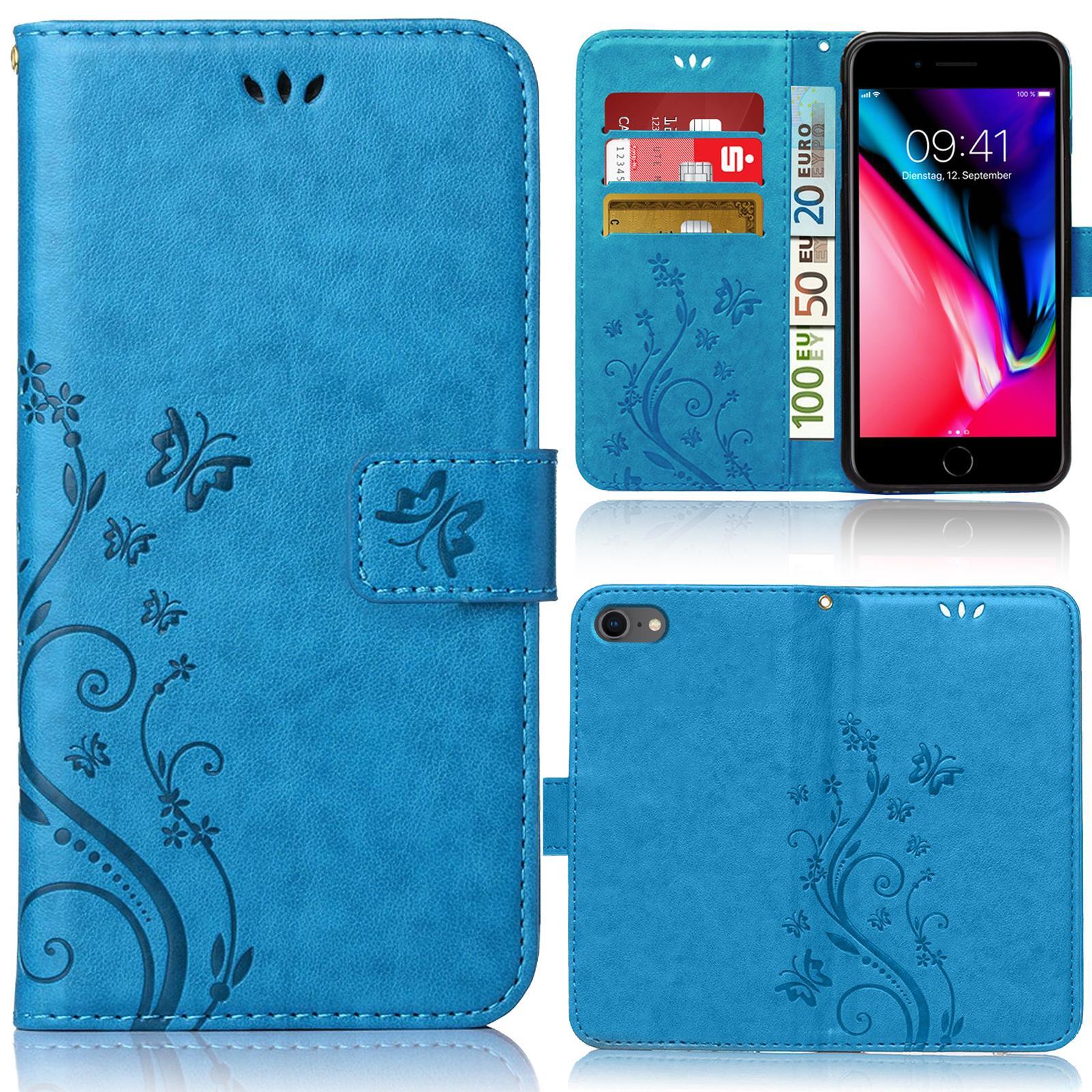 Handy Tasche für Apple iPhone 8 Schutz Hülle Blumen Flip Cover Wallet Etui Case
