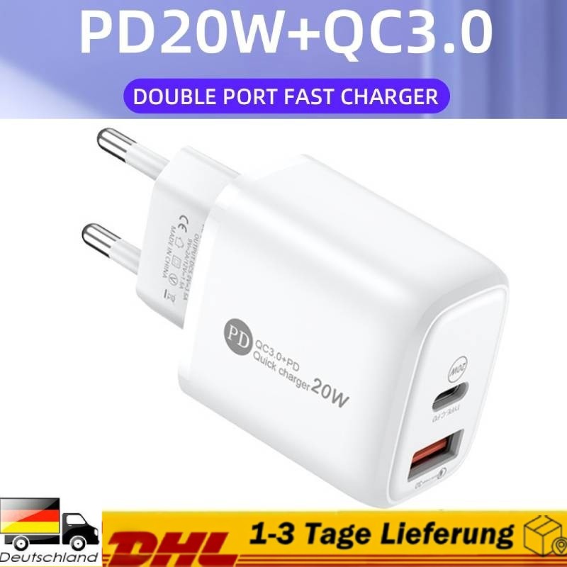 Ladegerät USB-C USB-A 20W 3A Ladeadapter Schnellladegerät PD Netzteil Steckdose