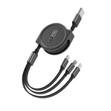 Vielseitiges 3-in-1 Einziehbares Ladekabel – Komfort bei jedem Einsatz. Dieses praktische multifunktionale Ladekabel vereint drei gängige Anschlüsse: Micro USB, USB Typ C und 8-Pin, und bietet somit eine flexible Lösung für verschiedene Geräte.