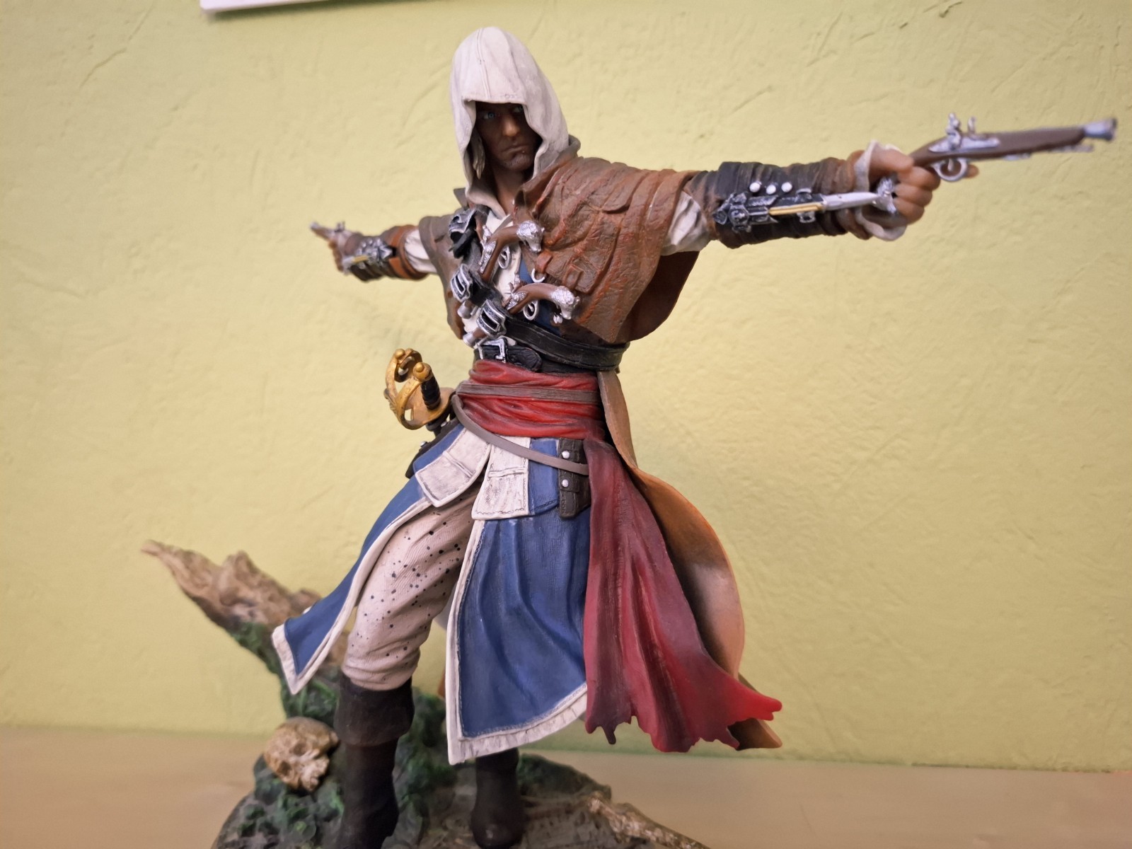 Die Ubisoft Collectibles Figur von Edward Kenway, aus dem Spiel "Assassin's Creed IV: Black Flag". Edward in voller Montur, zwei Pistolen zu seinen Seiten gerichtet. Die Figur ist wie neu, komplett unbeschädigt und stand seit dem Kauf nur in der Vitrine. Wird ohne die Originalverpackung verkauft.