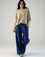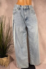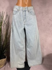 Damen Denim Wide Leg Hose Trousers Stickerei High Waist Jeans Freizeit
