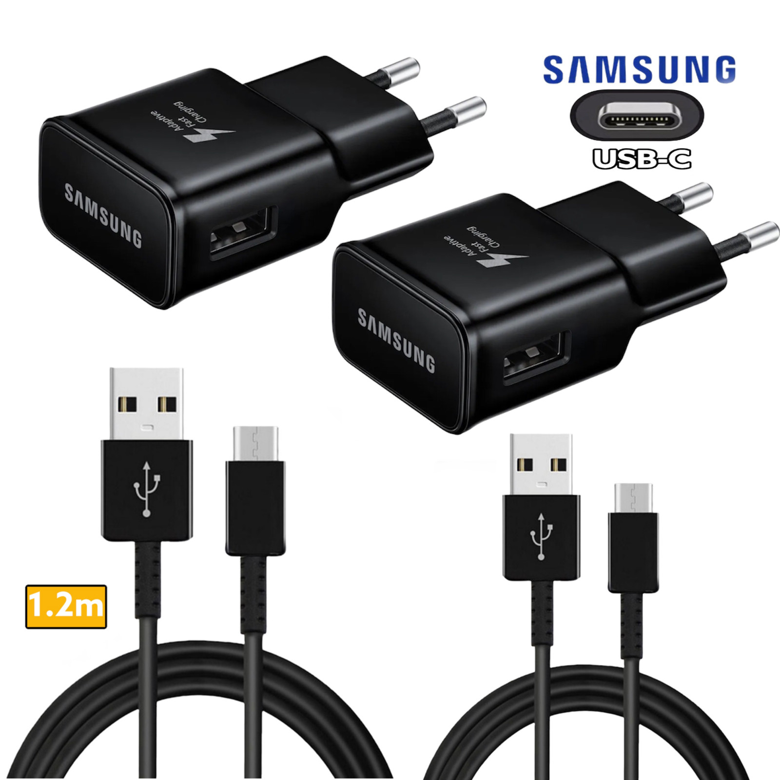 2x 1,2m Original Samsung USB-C Schnellladekabel + 2x Original Schnellade Adapter
