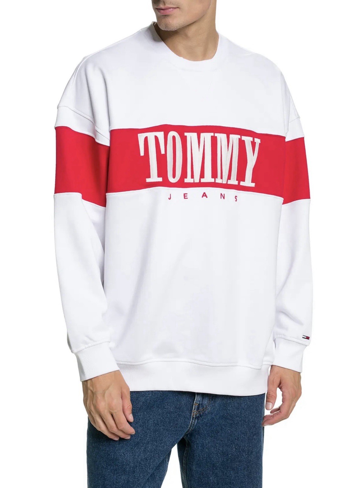 Verleihen Sie Ihrem Freizeitlook einen Hauch von Designerflair mit dem Tommy Jeans Herren Sweatshirt TJM Logo in strahlendem Weiß. Dieser stylische Pullover mit dem ikonischen Logo-Akzent ist genau das Richtige für Festivalzeit und Alltag. Die hochwertige Baumwollmischung von 88% Baumwolle und 12% Polyester verspricht optimalen Tragekomfort und Langlebigkeit, während die langen Ärmel und der runde Ausschnitt eine klassische Passform unterstreichen. Erhältlich in Größe XL bietet das Sweatshirt eine perfekte Passform für alle Jahreszeiten und ist zudem maschinenwaschbar, was die Handhabung erleichtert. Mit diesem Sweatshirt ziehen Sie die Blicke auf sich und genießen gleichzeitig höchsten Tragekomfort.