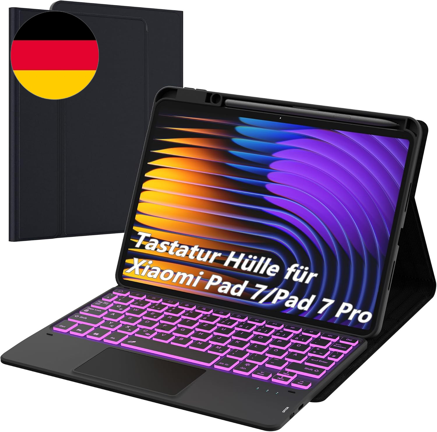 ROOFEI Für Xiaomi Pad 7/Pad 7 Pro 11.2 Zoll Hülle Mit Tastatur : 7-Farbiger Bele