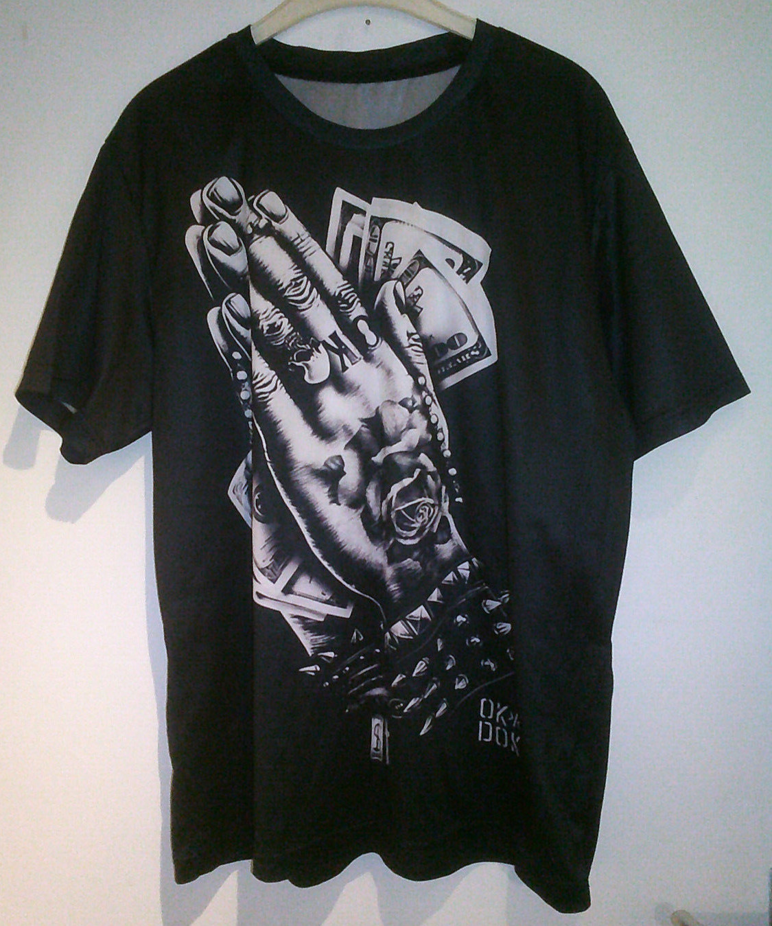Schwarzes Shirt Kurzarm mit weiß/grauem Druckbild vorne und hinten Gr. XL