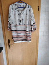 Bluse in sehr gutem Zustand Mit einer Knopfleiste, die aber nicht ganz runter geht Angenehmer Stoff Muster geht in Richtung Orient, Farben Petrol, Khaki, Weiß