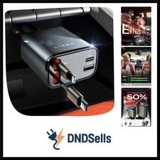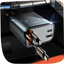 Multi-Geräte-Ladung für alle Mitfahrer: ob vorne oder hinten. Das LISEN 4-in-1 Auto Ladegerät mit 2 USB-Ports (USB-A 12W + USB-C 15W), einem 45W USB-C- und einem 12W für iPhone Einziehkabel (bis 80 cm ausziehbar) lädt bis zu vier Geräte gleichzeitig.