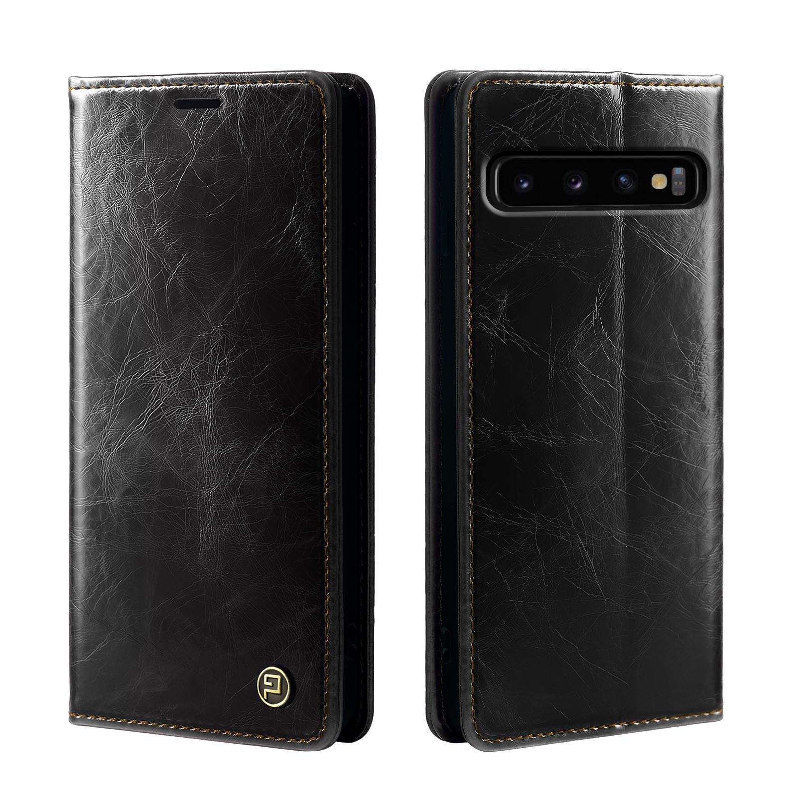 Hochwertige Klapphülle im Vintage-Look für Samsung Galaxy S Modelle - Exakte Passgenauigkeit durch verstärkte Kunststoffschale (Schwarz) - Integrierte RFID Schutzschicht - Smartes Design mit Geldfach und zwei Kartenfächern - Praktische Smartstand-Funktion - Schneller Blitzversand und engagierter Kundendienst an 7 Tagen die Woche!.