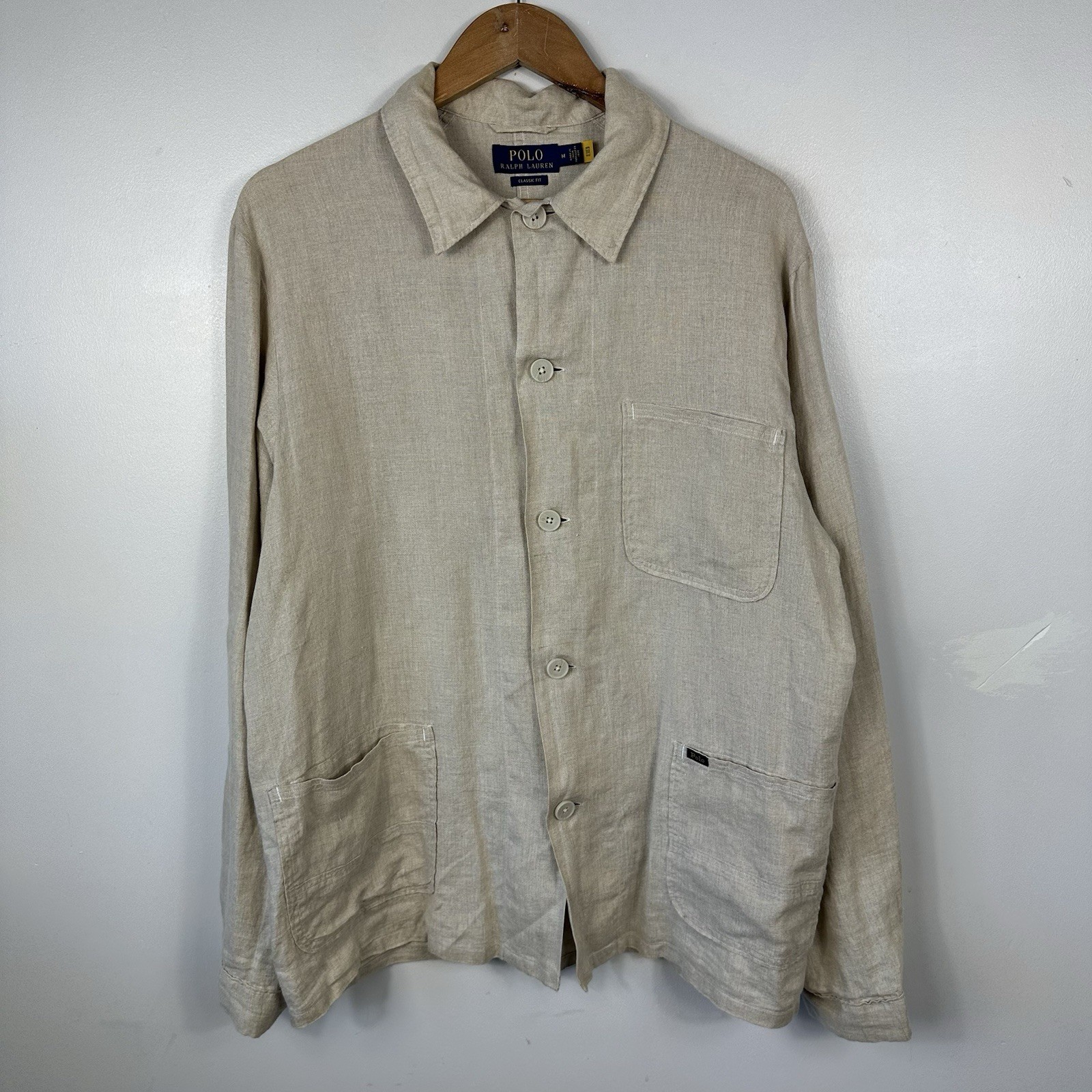 Polo Ralph Lauren Chore Jacket Shacket Overshirt, Linen, Tan Beige, Mens Medium - Shacket overshirt chore jacket style - Cream tan beige colourway - 100% linen - Utility chore pockets - Really good condition - Small mark on one arm Size Mens Medium Pit to pit approx 23.5 inches Length approx 28 inches Any questions please message us