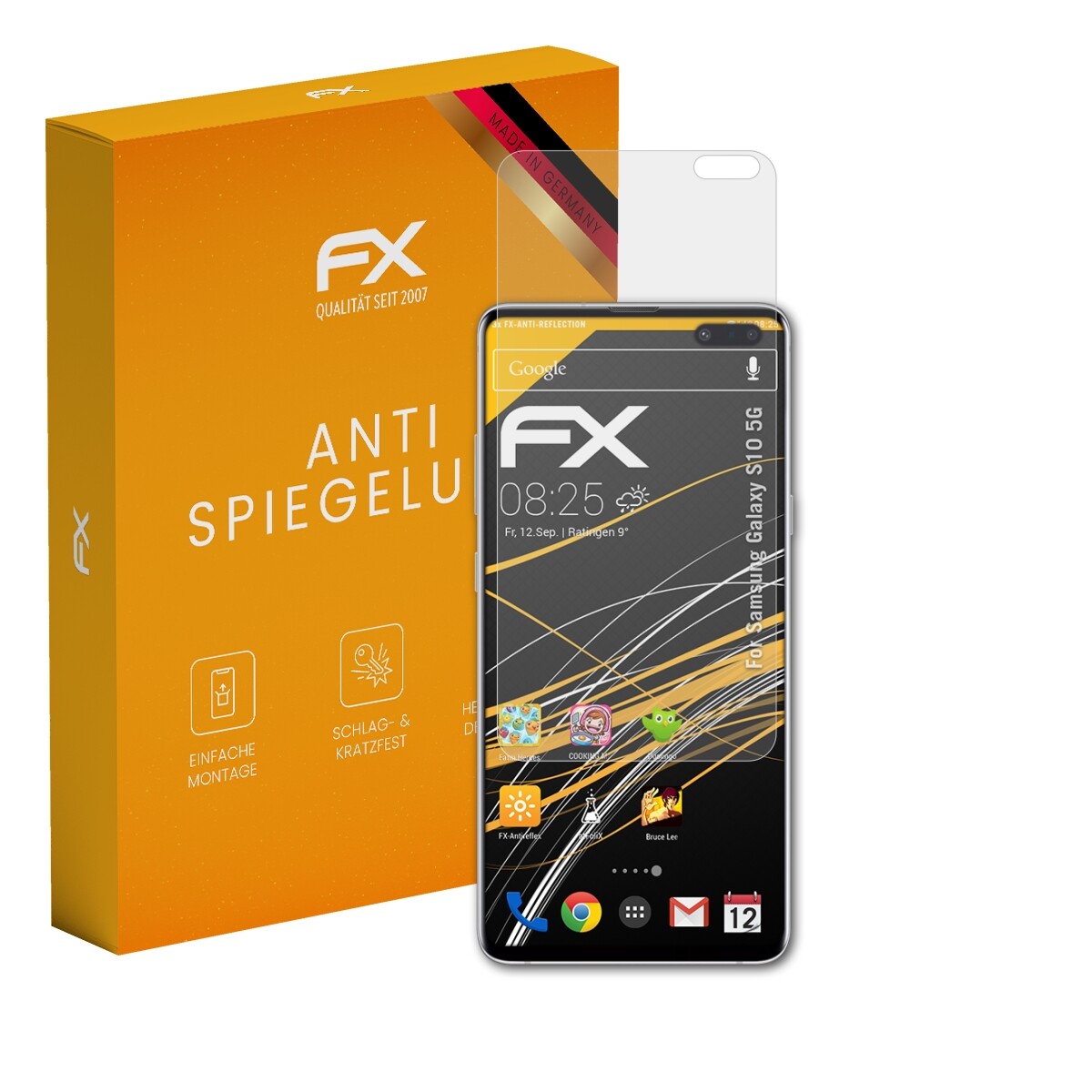 Entspiegelnd und stoßdämpfend: atFoliX 3 x FX-Antireflex Schutzfolie für Samsung Galaxy S10 5G - Made in Germany! (!) Gewölbter Displayrand, die Schutzfolie ist bewusst kleiner konstruiert. (!) Verkauf und Versand durch @FoliX - Original und direkt vom Hersteller! Montage Zubehör inklusive: Reinigungstuch, Montagewerkzeug (Rakel), Link zur mehrsprachigen, bebilderten Montageanleitung (inkl. Montagevideo).