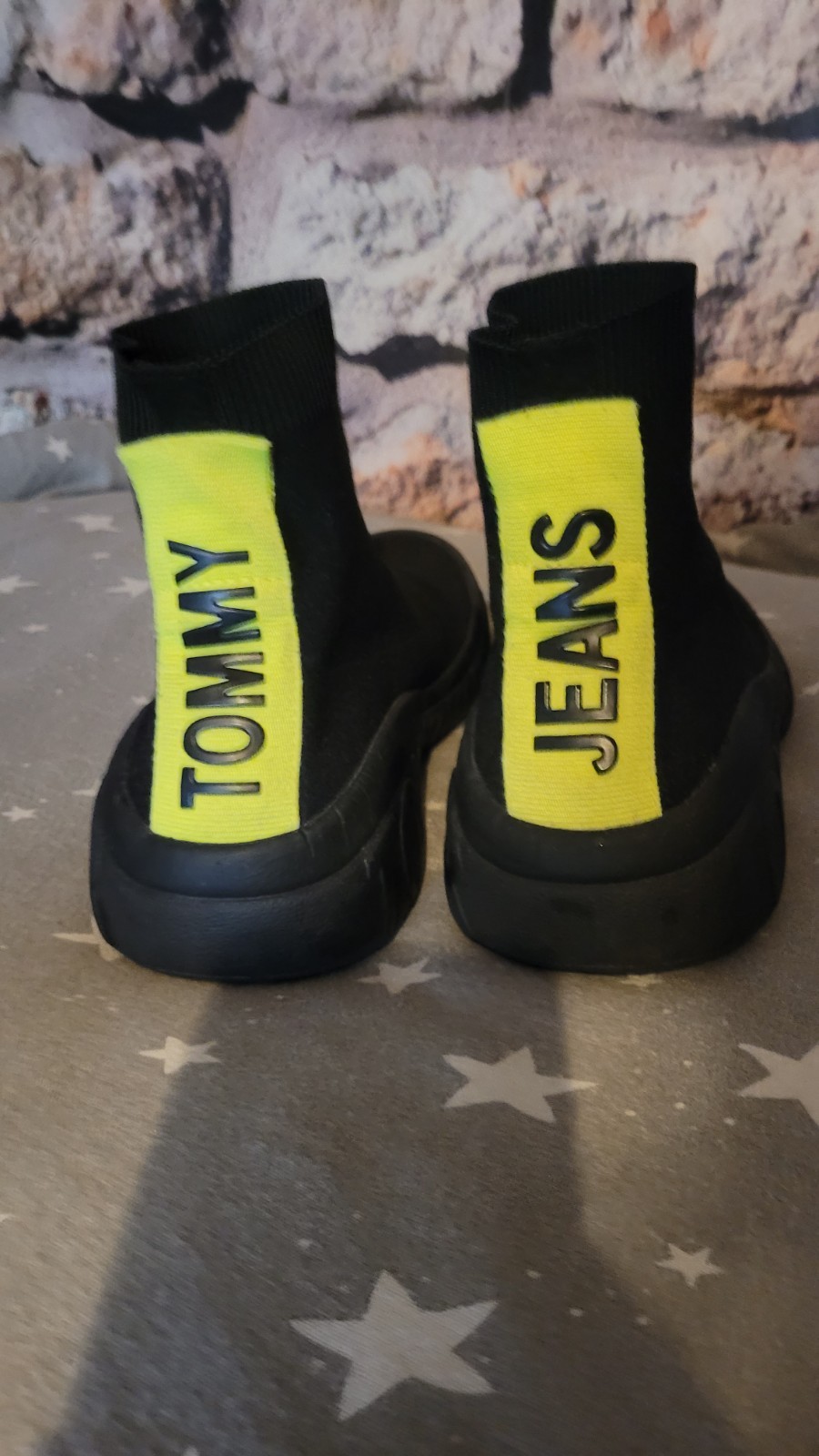 Erleben Sie den optimalen Komfort und Stil mit den Tommy Hilfiger Sockentrainern in Größe 44 (UK 10, US 11), die eine perfekte Ergänzung für jede Herrengarderobe darstellen. Diese Sneaker in klassischem Schwarz mit leuchtend gelben Akzenten setzen modische Akzente und bieten durch die robuste Gummilaufsohle sowie die hochwertige Synthetik-Innensohle ein angenehmes Tragegefühl. Die Schuhe zeichnen sich durch eine bequeme Standard-Schuhweite aus und sind ideal für die sommerlichen Tage. Mit ihrem zeitlosen Design ohne Muster und der praktischen Schnürung passen sie zu zahlreichen Outfits und sind für sportliche Aktivitäten ebenso geeignet wie für einen legeren Stadtbummel. SELTEN GETRAGEN,WIE NEU. VERSAND ALS PAKET VERSICHERT PRIVATVERKAUF KEINE RÜCKNAHME