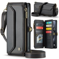 Handykette Handyhülle mit Band PU Leder Umhängetasche iPhone 16 Pro Max Schwarz