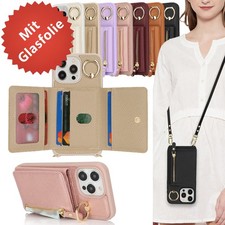 Betterfon Apple iPhone 15 Pro Max Hülle mit Band, Leder iPhone 15 Pro Max Handytasche Handyhülle Praktische Handykette Kartenfächer Brieftasche Umhängetasche Apple. Handykette für Samsung Galaxy A42 5G Handyhülle mit Band Hülle Handy Tasche.