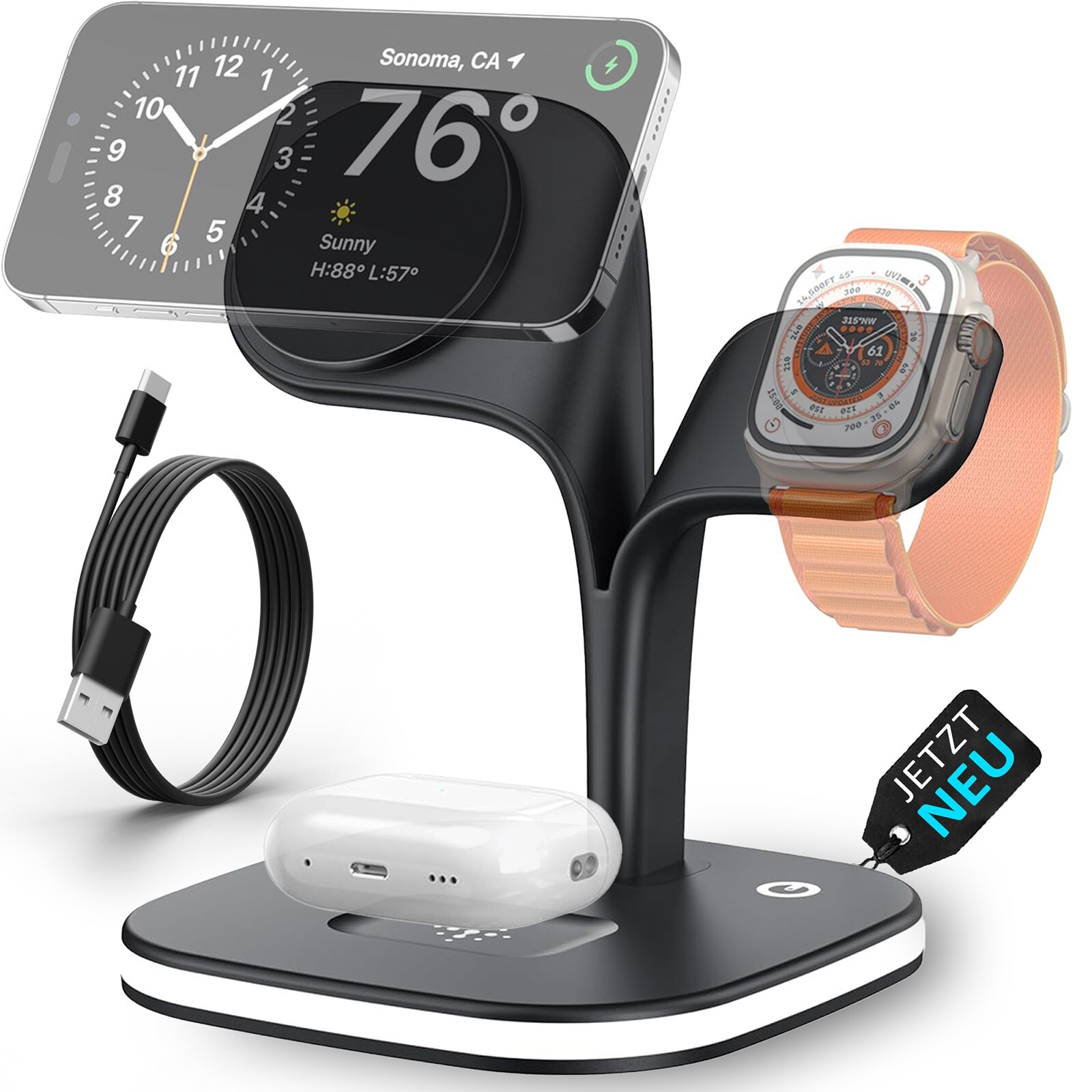 Ladestation MagSafe 3in1 Ladegerät kabellos Charger Induktiv iPhone Ladepad 15w