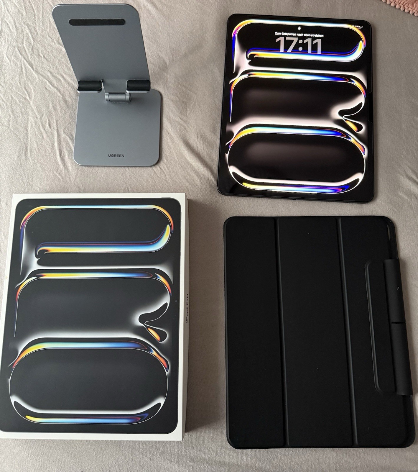 Ich verkaufe mein iPad Pro M4 mit 13 Zoll und 256 GB in sehr gepflegtem Zustand. Das Gerät wurde von Anfang an mit Panzerfolie und Smart Folio genutzt, daher keine Kratzer. Der Akkuzustand beträgt 100 %. Details: • Modell: iPad Pro M4 – 13” • Speicher: 256 GB • Zustand: sehr gepflegt • Akku: 100 % • AppleCare+ bis 20.05.2026 • Smart Folio inklusive • Originalverpackung vorhanden • Rechnung vorhanden Das iPad funktioniert einwandfrei ohne Einschränkungen. Der Neupreis liegt aktuell bei ca. 1.600 €. Ich verkaufe es nur, da ich es zu selten nutze. Abholung & Versand möglich. Zahlung: • PayPal • Echtzeitüberweisung • Bar bei Abholung Handynummer: 01794949520