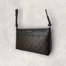 CALVIN KLEIN CK brown leather embossed Vtg belt silver tone buckle 27-33” waist. 3cm wide Great condition