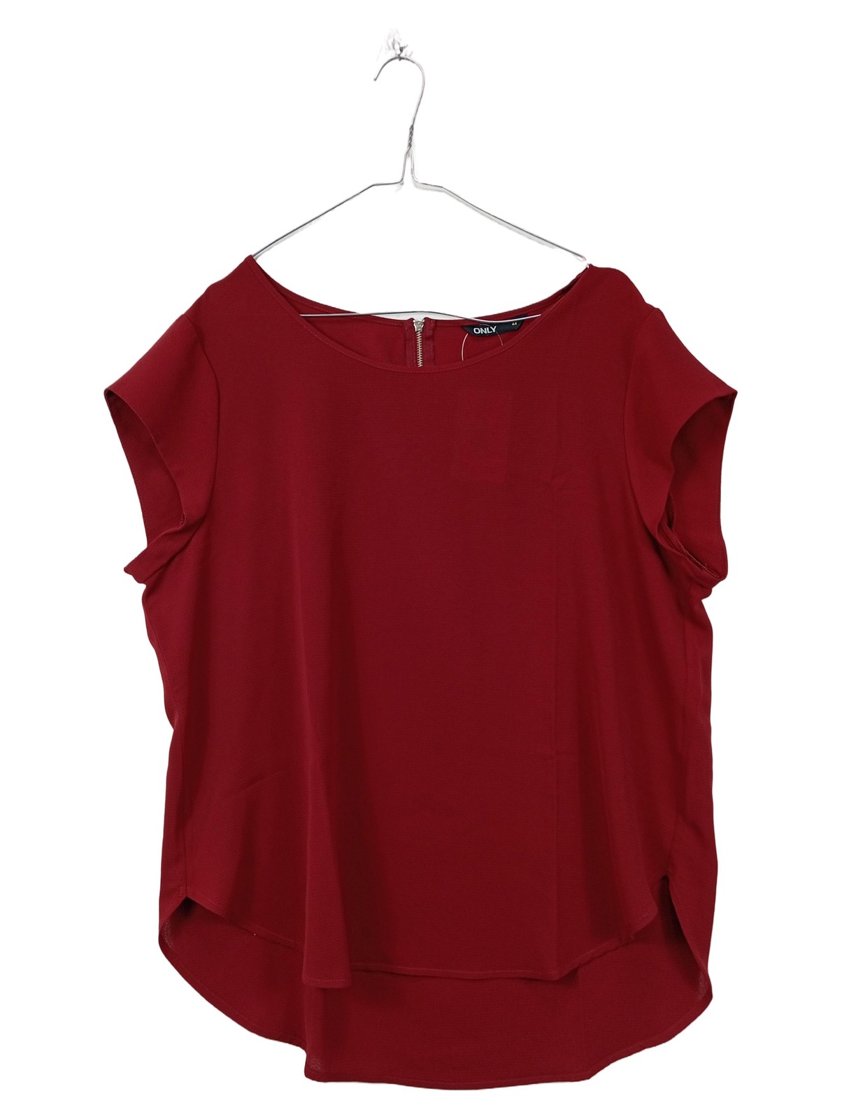 ONLY Damen Bluse T-Shirt Gr. 44 XXL Bordeaux Rot Reißverschluss