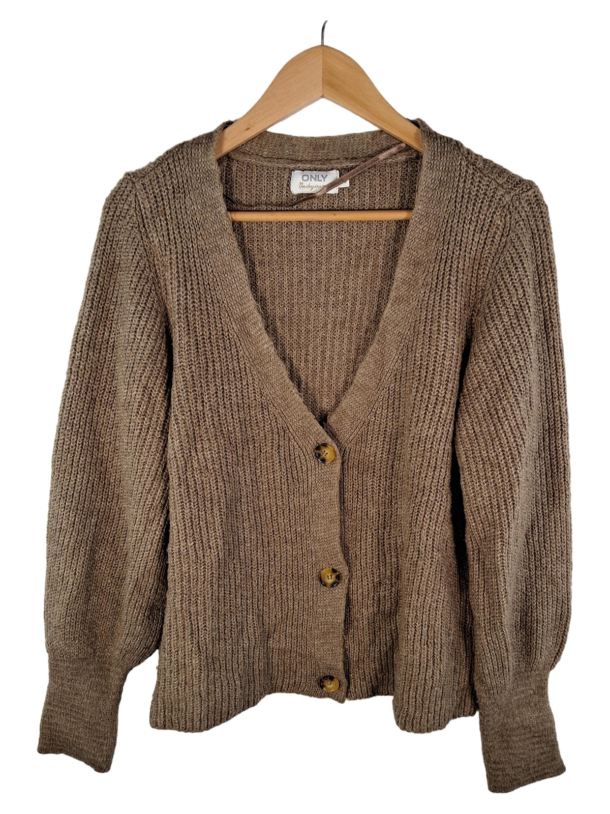 ONLY Damen Strickjacke Cardigan Gr. M Beige Rippstrick Knöpfe