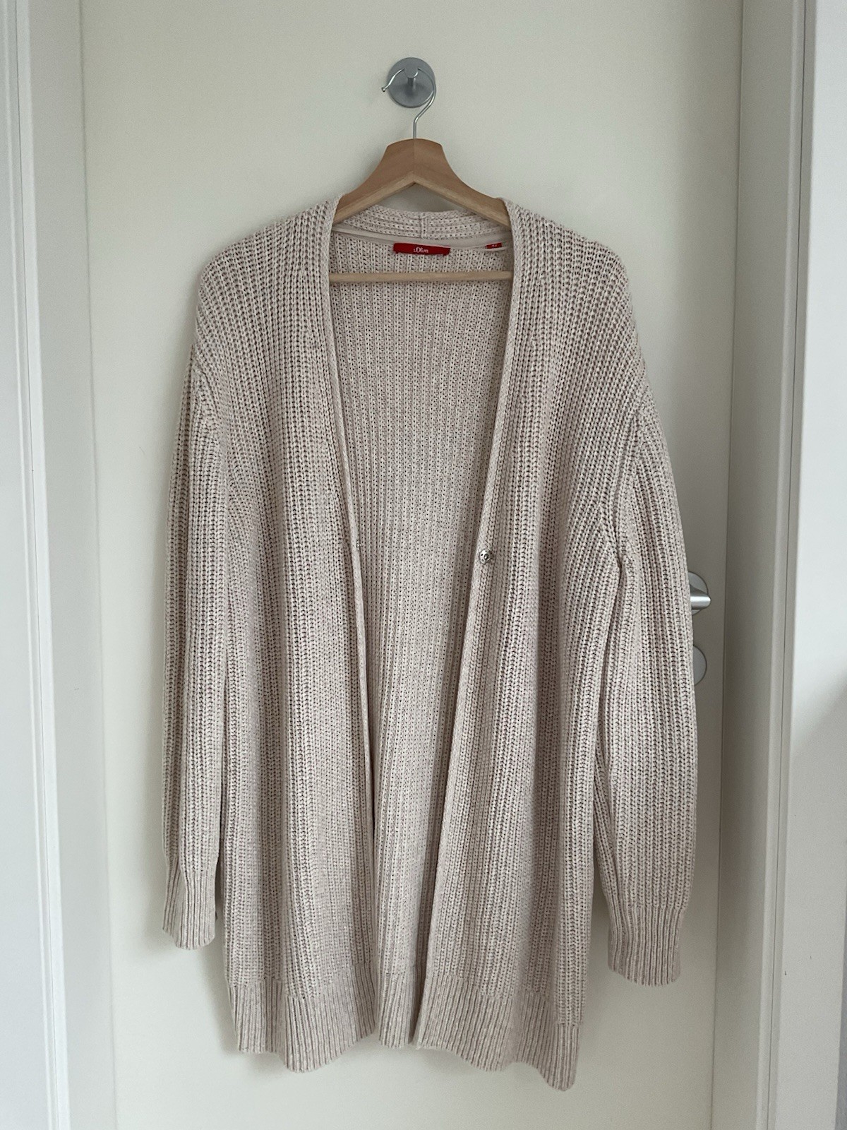 Diese elegante s.Oliver Strickjacke in Größe 42 präsentiert sich in einem zeitlosen Beigeton und ist ein vielseitiges Kleidungsstück für Ihre Garderobe. Aus einer weichen Baumwollmischung mit Polyacrylat gefertigt, garantiert sie gemütlichen Tragekomfort und ist dabei pflegeleicht dank Maschinenwaschbarkeit. Die Strickjacke ohne Muster punktet mit ihrem Grobstrick-Design, das sie zum idealen Begleiter für Herbst, Frühling und Winter macht. Ob für Reisen, Freizeitaktivitäten oder elegante Anlässe – dieses Modell mit langen Ärmeln und regulärer Passform ist ein echtes Allroundtalent. Hergestellt in China, vereint diese Strickjacke Qualität und Stil für die moderne Frau. Von Achsel zu Achsel: 56cm Länge: 85cm
