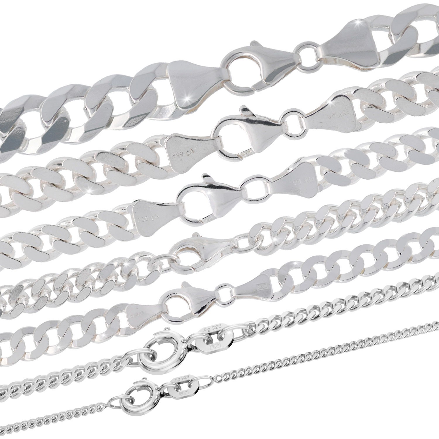 Silberkette Panzerkette Breite: 7,1 mm Karabiner Verschluss. Silberkette Panzerkette Breite: 5,9mm Karabiner Verschluss. Silberkette Panzerkette Breite: 5,2 mm Karabiner Verschluss. Silberkette Panzerkette Breite: 4,0 mm Karabiner Verschluss.