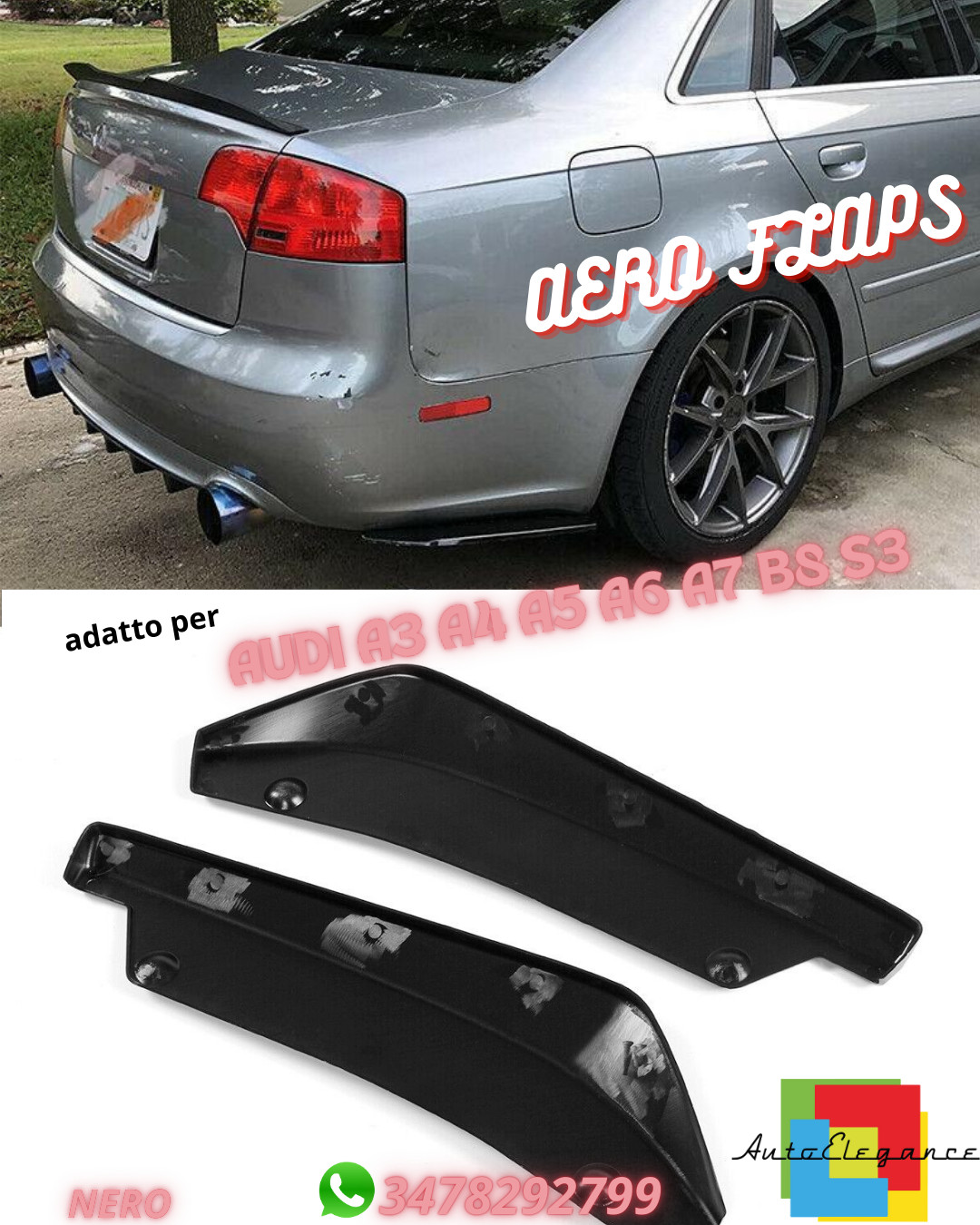 ⭐AERO FLAPS GEEIGNET FÜR AUDI A3 A4 A5 A6 A7 B8 S3 SCHWARZ ⭐