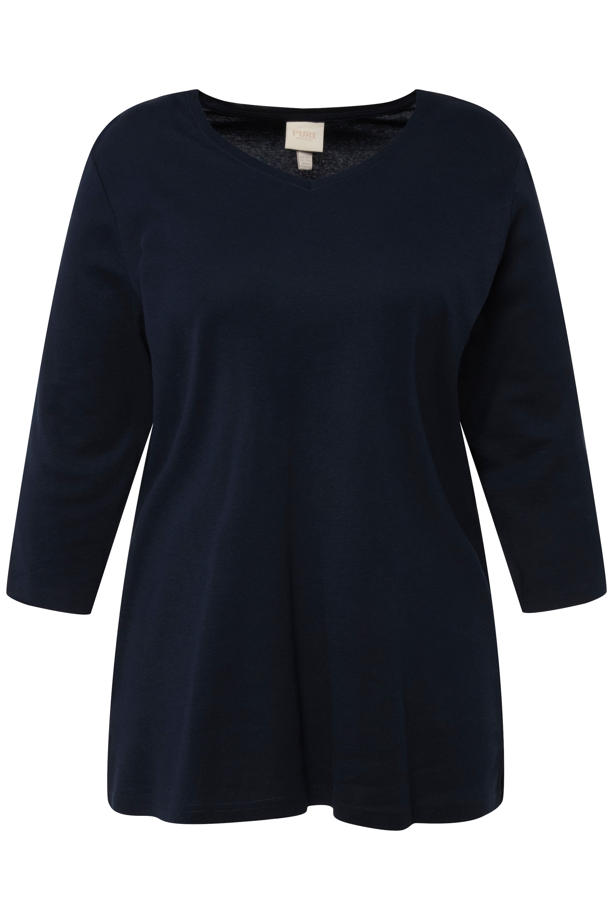 Ulla Popken Damen große Größen Shirt Rippjersey V Ausschnitt 3 4 Arm