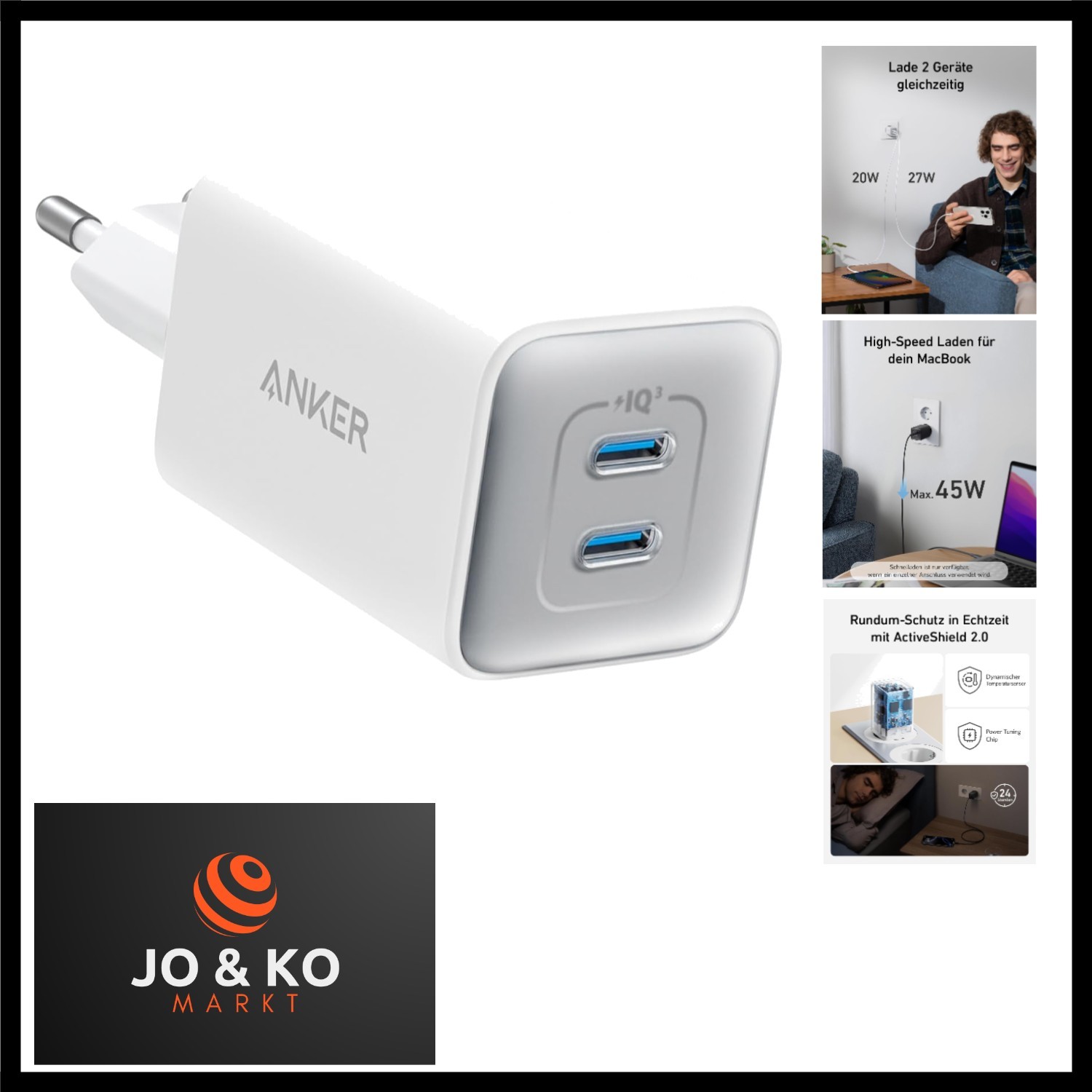 USB C Ladegerät 47W, 523 Charger Nano 3, kompakt mit 2 Anschlüssen GaN Schnel...
