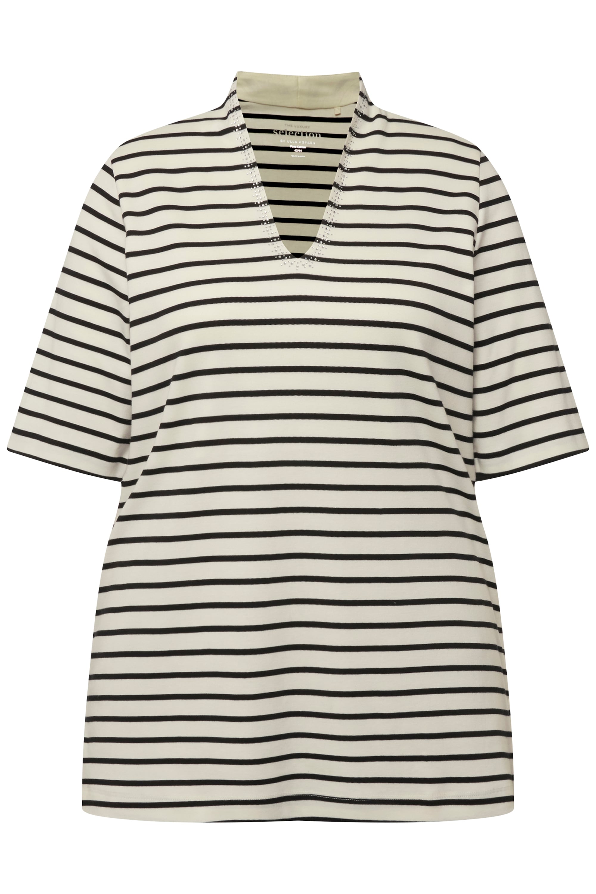 Ulla Popken Damen große Größen T Shirt Ringel Pima Cotton Kelchkragen
