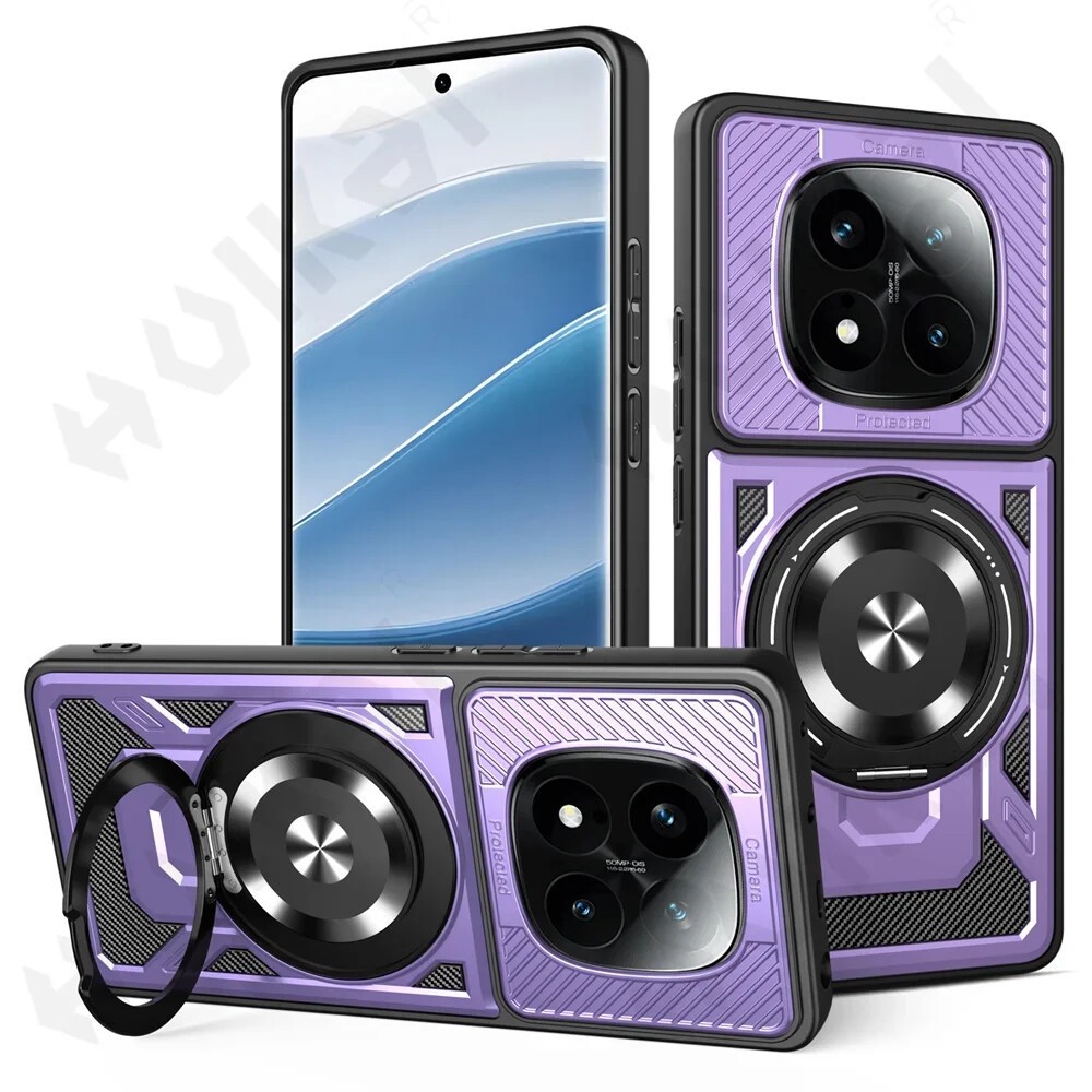 Shockproof Magnetic Case For Xiaomi Redmi Note 14 13 Pro Plus 14C 4G 5G Ring Stand Cover. Anti-slip cushioning provides excellent grip and prevents the phone from slipping out of your hand. Features textured edges and impact resistant hard PC case back.