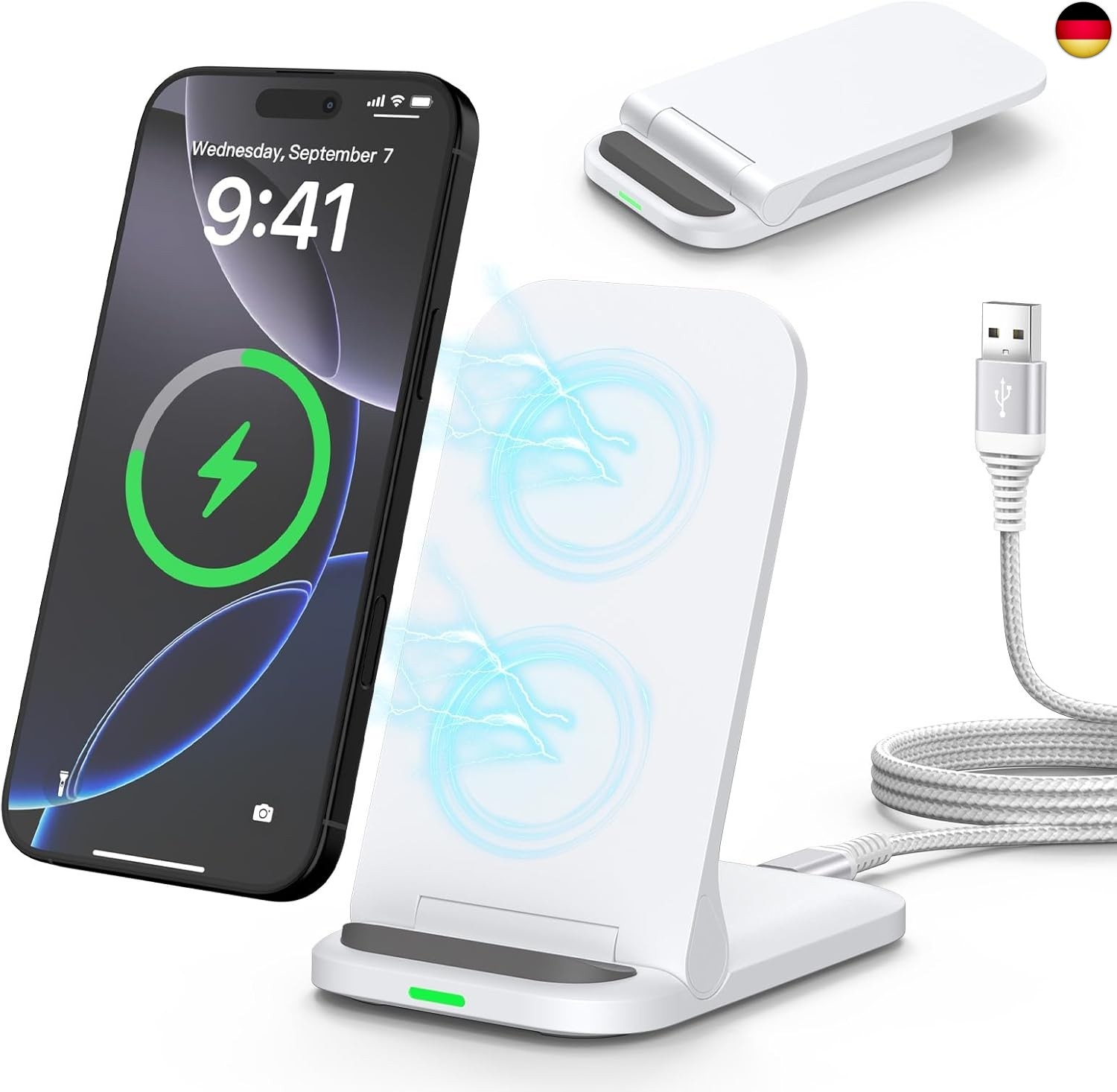 2 in 1 Handy Ladestation und Handyhalterung. Flach klappbar bis Handgröße, ideal für Reisen und Geschäftsreisen. Ausgang: 15W/10W/7.5W/5W. 15W Faltbar Samsung. Nicht kompatibel mit Samsung A/M/J-Serie und iPhone 6/7.