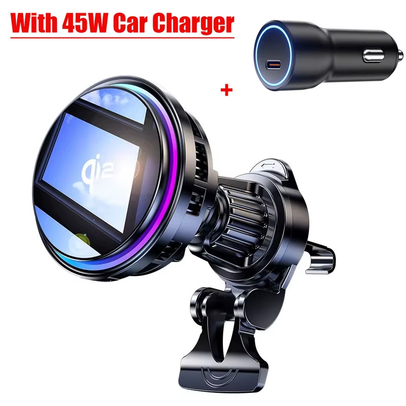 QI2 Eiskühlung Gehärtetes Glas RGB Magnetisches Drahtloses Autoladegerät Schnell