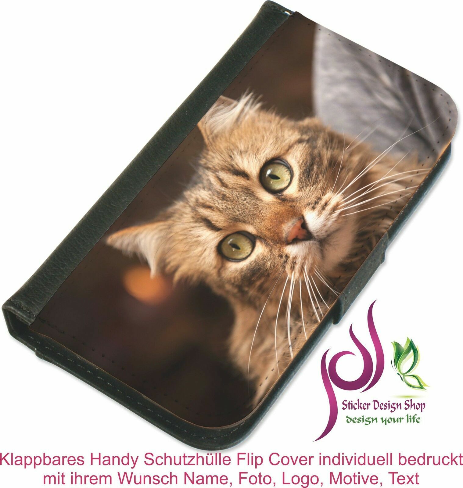 Flipcase Klappbare iPhone - Samsung Handy Schale Hülle Cover CasePersonalisierte Schutzhülle Kunstleder. Bedienbarkeit des Smartphones bleibt in vollem Umfang erhalten. individuell bedruckt mit ihrem Wunsch Foto Logo Motive Text Neu.