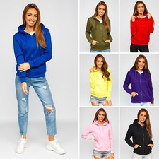Damen Kapuzenpullover Sweatjacke Sweatshirt Kapuze Basic Unifarben Jacke Hoodie
