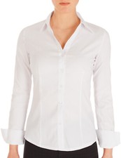 Damen Stretch Business Bluse Hemd Langarm tailliert Hemdbluse Businessbluse Gr M