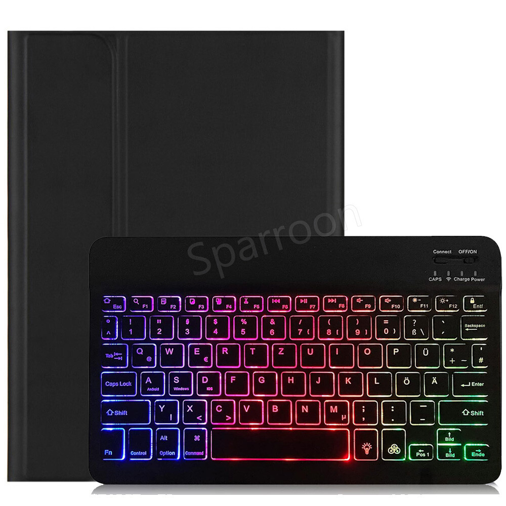Die automatische Schlaffunktion der Tastatur kann die Standby-Zeit verlängern, sodass Sie Ihre Sorgen um die Stromversorgung verringern können. QWERTZ Schwarz Tastatur. Abnehmbare Bluetooth-Tastatur: Sie wird per Magnet mit dem Gehäuse verbunden, und die Tastatur ist drahtlos mit dem Tablet verbunden, das im Inneren des Gehäuses oder allein verwendet werden kann.