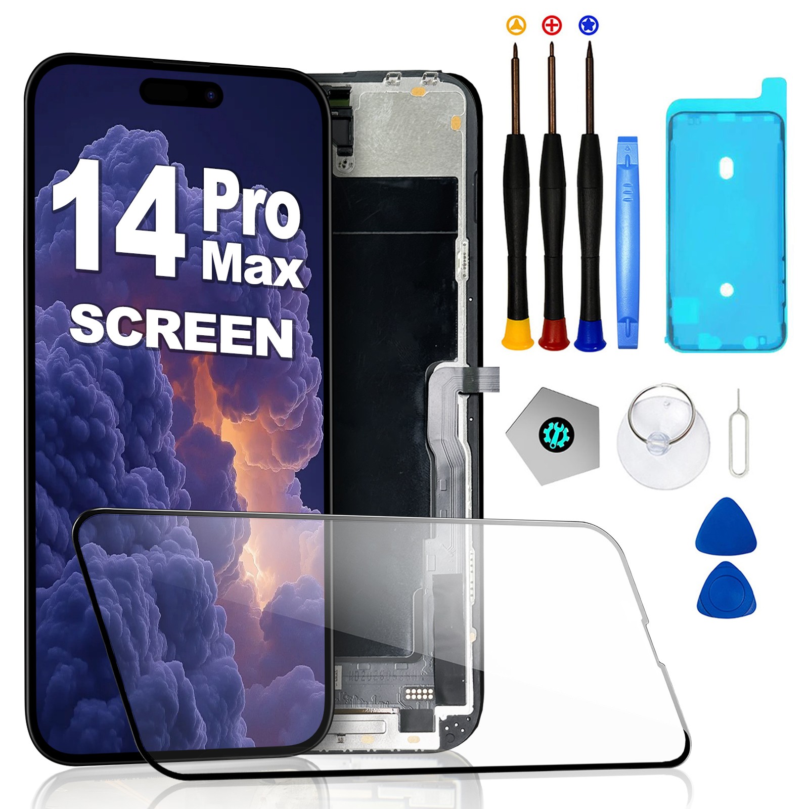 1 Kompatibel mit iPhone 14 Pro Max Bildschirm Ersatz. Jeder Bildschirm wird strengen Tests unterzogen, um eine einwandfreie Funktion zu gewährleisten. Pixel: Hohe Auflösung, lebendige Bilder 3D-Berührung.