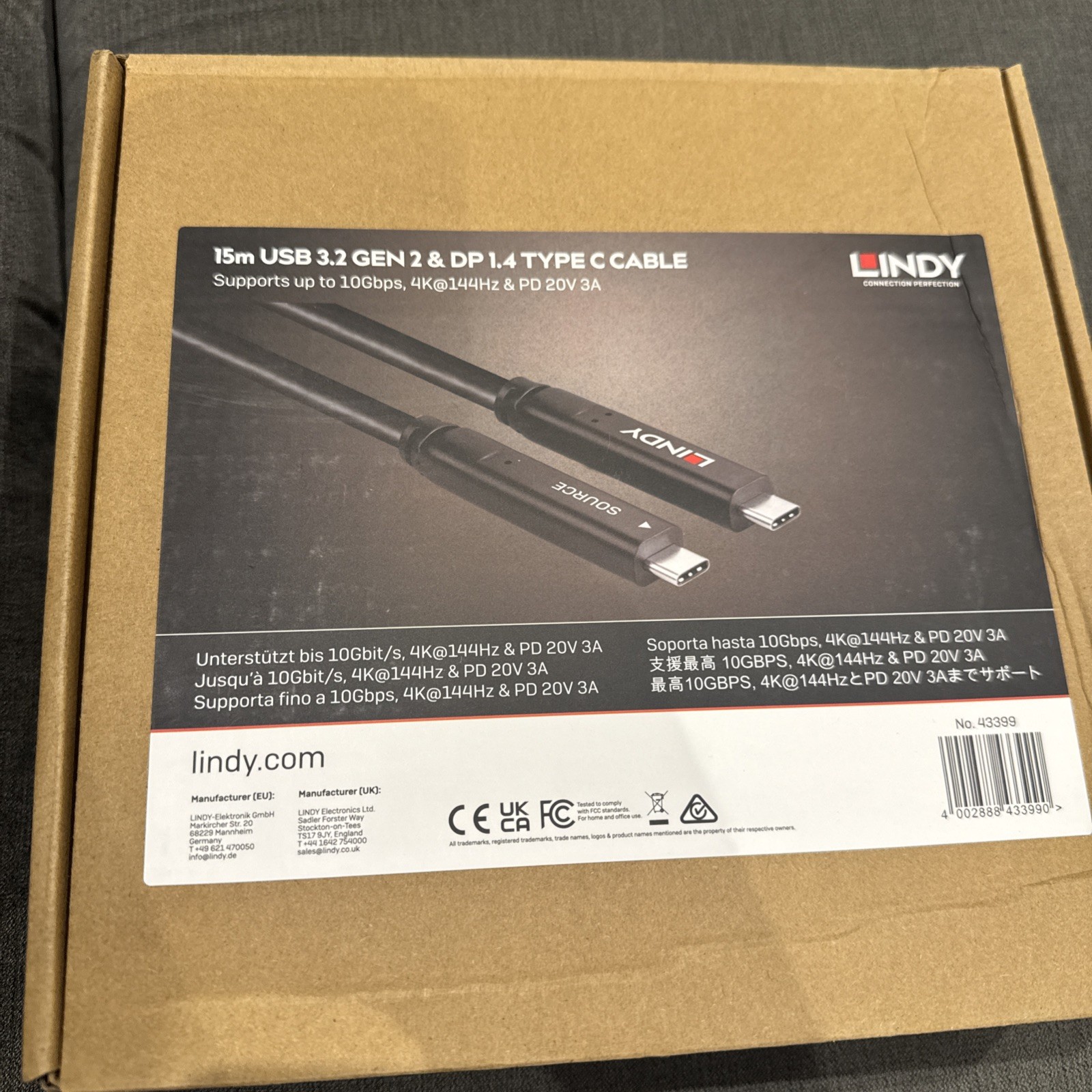 Grab a bargain. The Lindy 15m USB 3.2 Gen 2 & DP 1.4 Type C Hybrid Cable is a high-quality cable designed for fast data transfer and power delivery. With a maximum data transfer rate of 5000 Mbit/s and USB Power Delivery up to 60W, this cable is perfect for use with a variety of devices. The cable features a sleek black design and is made from durable materials, including a copper shield and PVC jacket. Compatible with USB 3.2 Gen 1 and DP 1.4, this versatile cable is ideal for professionals and consumers alike.
