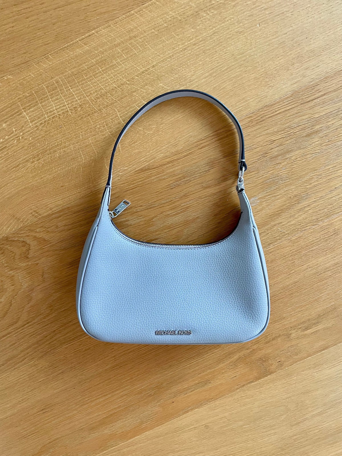 Die Tragetasche besticht durch ihr hochwertiges Leder in einem edlen Grauton, wodurch sie zu einem vielseitigen Begleiter für jede Gelegenheit wird. Mit ihrer kompakten Größe bietet sie ausreichend Platz für Ihre Essentials und lässt sich bequem über der Schulter tragen.