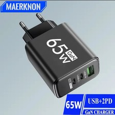 65W GAN 2x USB-C USB-A Ladegerät Schnellladung Fast Charging / Schwarz