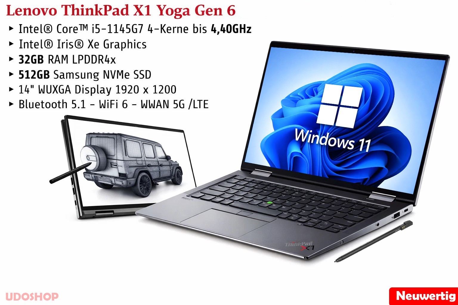 Perfekt für anspruchsvolles Arbeiten überall. Arbeitsspeicher (RAM) 32 GB Dual Channel (Sehr selten & leistungsstark). Eingabegeräte Original DE-Tastatur (beleuchtet) +Integrierter Lenovo Pen. Lenovo ThinkPad X1 Yoga Gen 6.